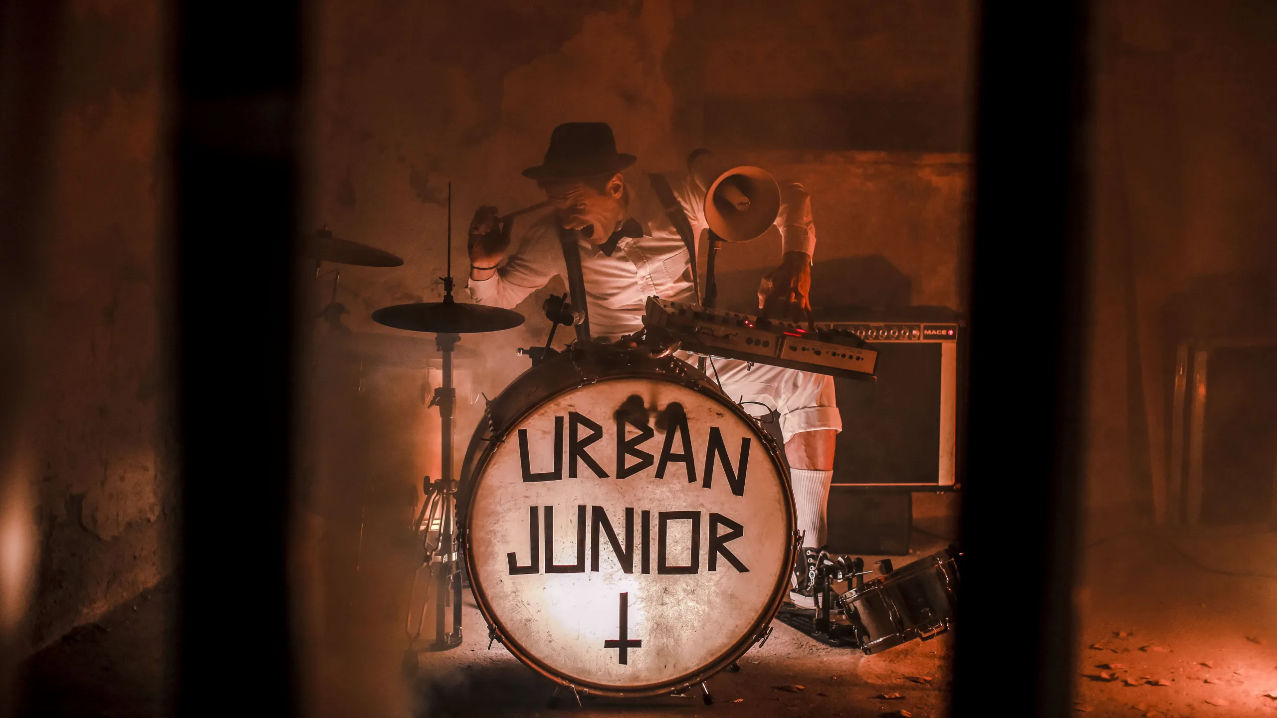 Die Blödheit von Punk, die Einfachheit von Techno und die verzweifelte Seele des Blues. Dieser Mann hat Alles in einem. URBAN JUNIOR ist ein musikalisches und körperliches Wunderwerk. Sein Sound ist einzigartig und äußerst wuchtig, seine Live Performances