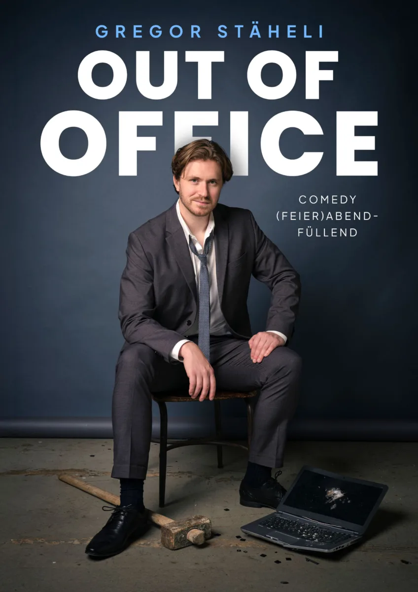 Mit «Out Of Office» hebt er seinen jahrelangen Spagat zwischen Büro und Bühne auf und bringt die beiden Welten zusammen – als Stand-Up-Comedy-Programm gepaart mit absurden Slam-Geschichten.