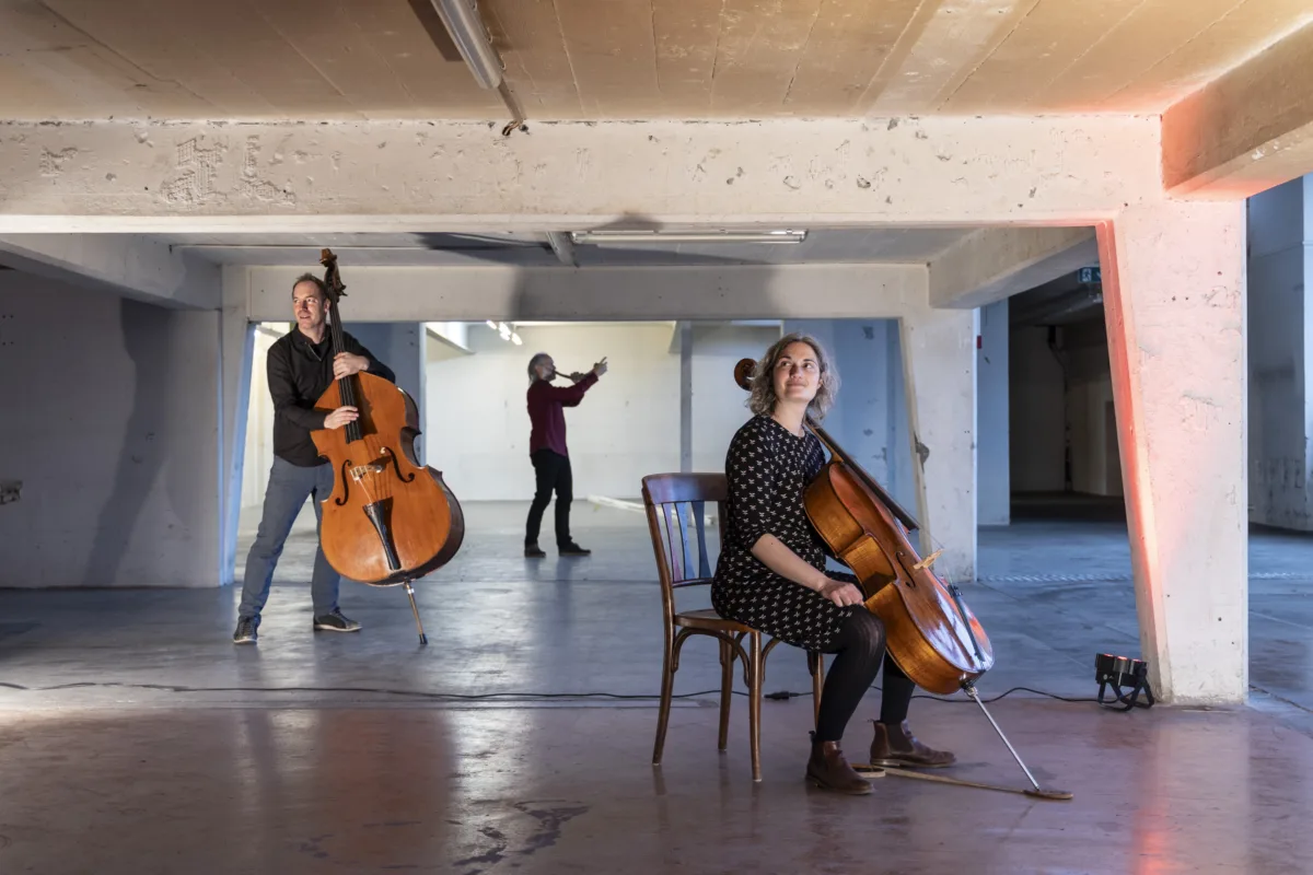 StimmSaiten ist ein Ostschweizer Ensemble, das sich gänzlich der Freien Improvisation widmet. Seit über 10 Jahren spielen die drei Musiker:innen ausschliesslich Musik, die im Moment entsteht. Sie kommen musikalisch aus unterschiedlichsten Ecken: Marcello Wick erforscht den archaischen Ober- und Untertongesang. Lorena Dorizzi spielt mit ihrem Cello zeitgenössische Klassik sowie Theatermusik und Kontrabassist Marc Jenny pendelt zwischen Performance, Punk und Jazz.